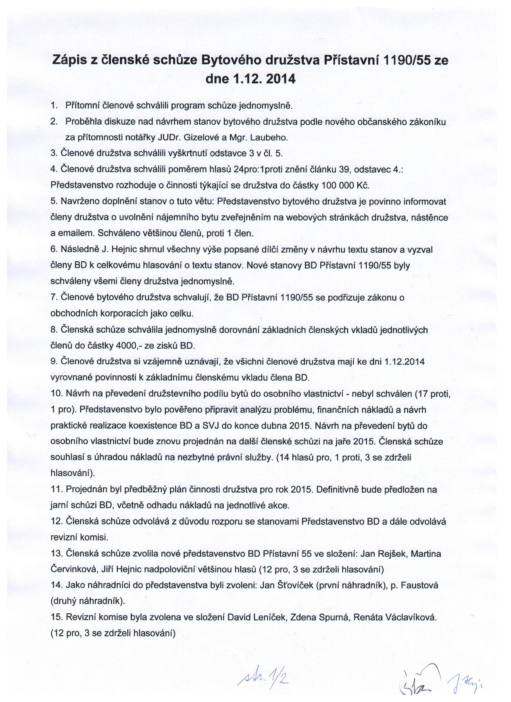 Srdečně zveme všechny členy BD Přístavní 1190/55 na členskou schůzi, která se uskuteční 1.12.2014 a přikládáme pozvánku s navrženým programem. pozvánka na schůzi 141201